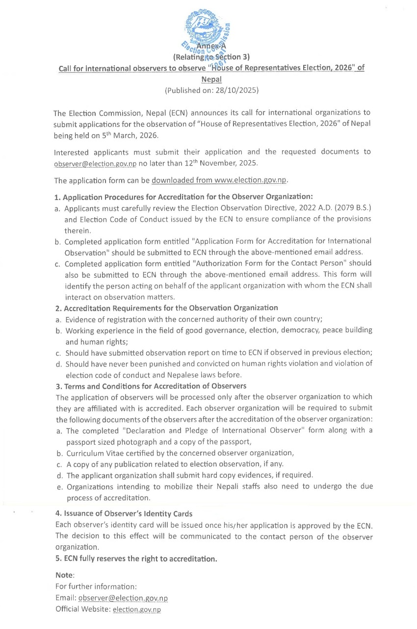 Call for International Observers to Observe the House of Representatives Election, 2026 of Nepal
